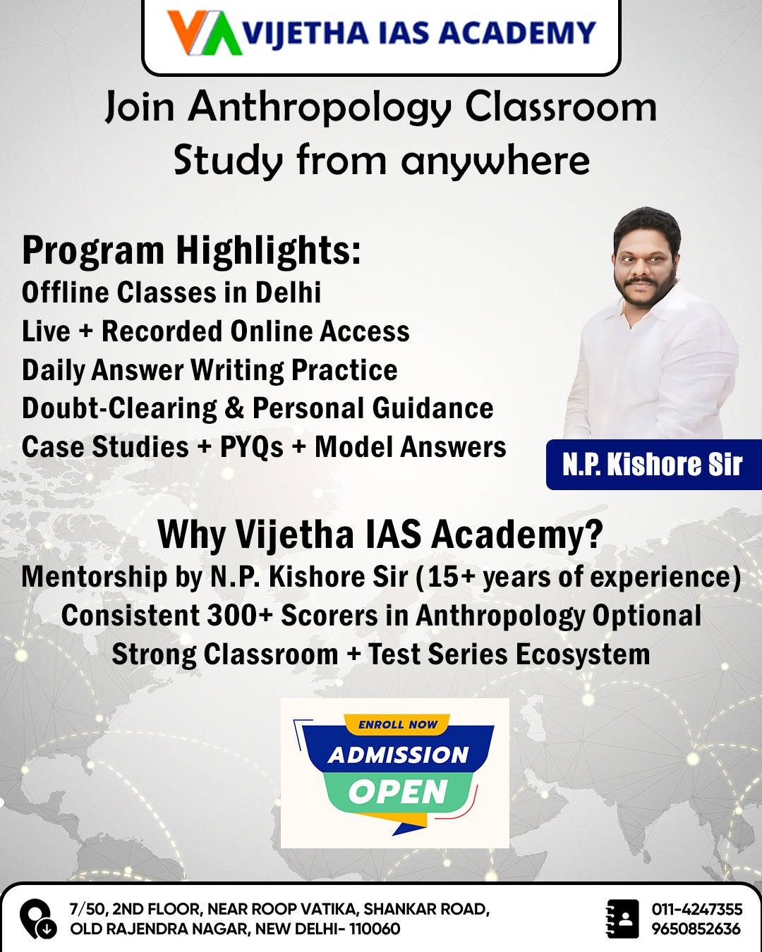 Enroll today in Vijetha IAS Academy’s Anthropology UPSC Test Series 2025 and start your journey to the rank list.